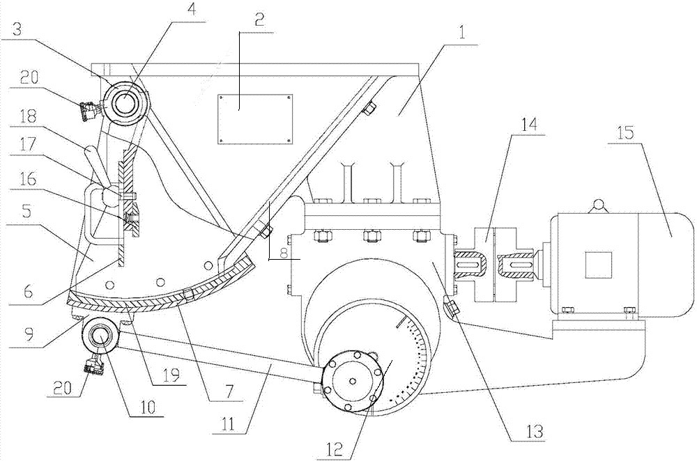 9、Bracket 10、Pendulum shaft 11、Connecting rod 12、Eccentric wheel body